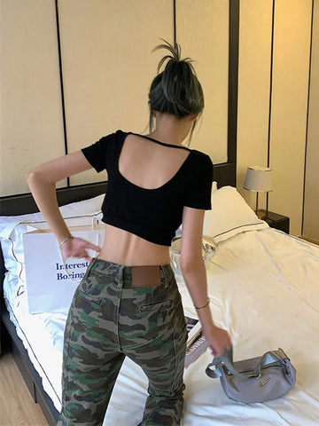 Make a bold statement with our High Waist Camouflage Flared Pants, an essential piece for any wardrobe that embraces the grunge style. This garment perfectly combines the rebellious attitude of military patterns with the elegant silhouette of the 70s for a thoroughly modern look. These cargo pants are made from durable yet comfortable denim, designed to fit the body shape while providing ample freedom of movement. The high waist accentuates the silhouette, while the flared cut creates a flattering visual balance for all body types. The practical pockets and the color palette in greens and earth tones make these pants a versatile choice that easily pairs with your favorite tops and various accessories. Whether for a concert, a relaxed day with friends, or even for a bold look at the office - these pants are ready to accompany you on all your urban adventures. Slip them on and let the world know that you are not afraid to stand out in style!