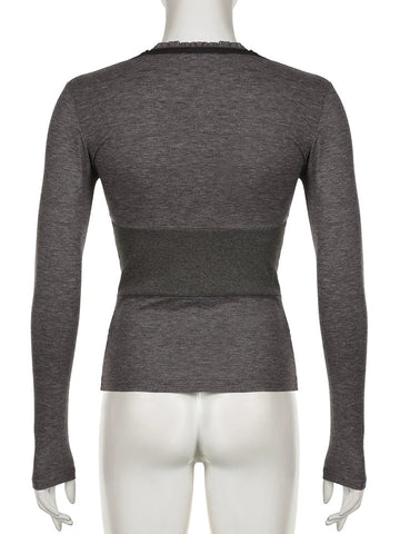 Edgy Grunge Slim Patchwork T-Shirt with Deep V-Neck