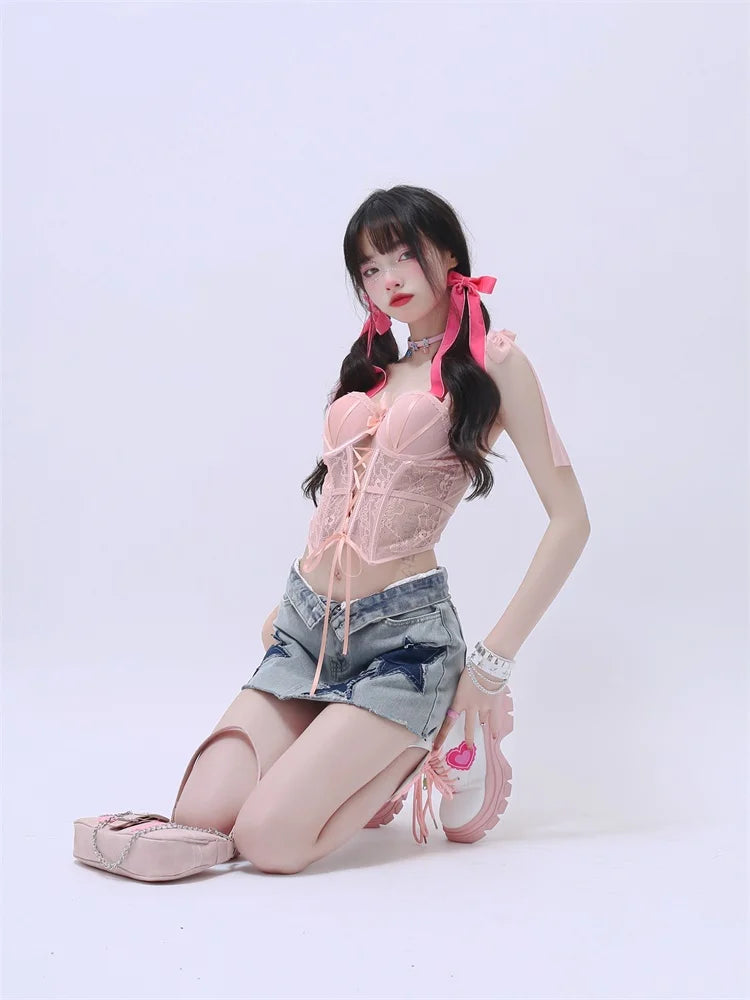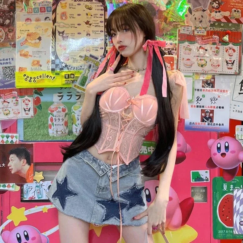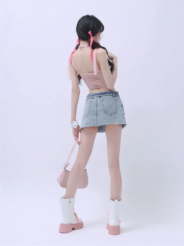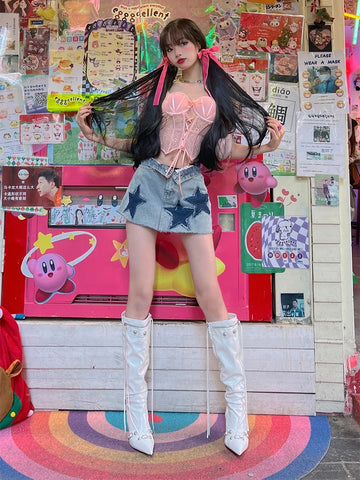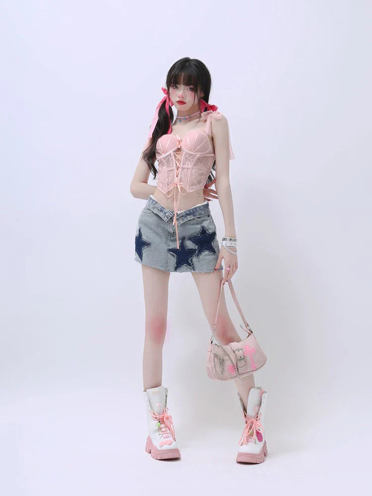 Rock the Stars with this Grunge Denim Skirt Y2K