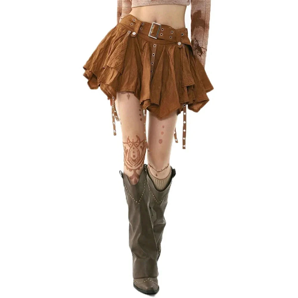 Fairy Grunge Irregular Mini Skirt Brown Vintage
