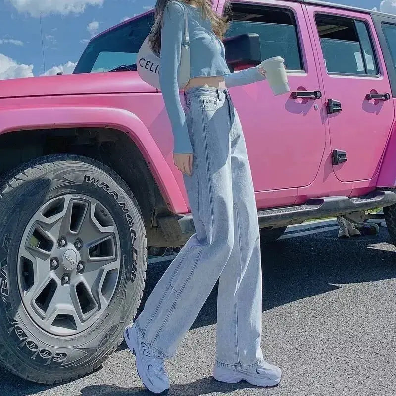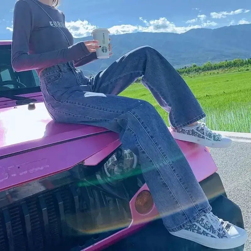 Discover the bold selection of blue indie jeans that capture the essence of alternative fashion. These women's jeans are designed to highlight your individuality while providing maximum comfort. The straight fit and high waist create an elegant silhouette, while the bright blue color adds a touch of freshness to your wardrobe. This lovingly crafted jeans are both durable and stylish. High-quality finishes ensure a long lifespan, even for the adventurous among you. Whether for a casual outing with friends or a stroll through the city streets, these pants are a must-have for anyone looking to express their uniqueness through style. Pair them with a long-sleeved crop top and a pair of sneakers for a casually chic look. Show the world that you dare to be different, that you dare to be yourself, with these high-waisted indie-style jeans.