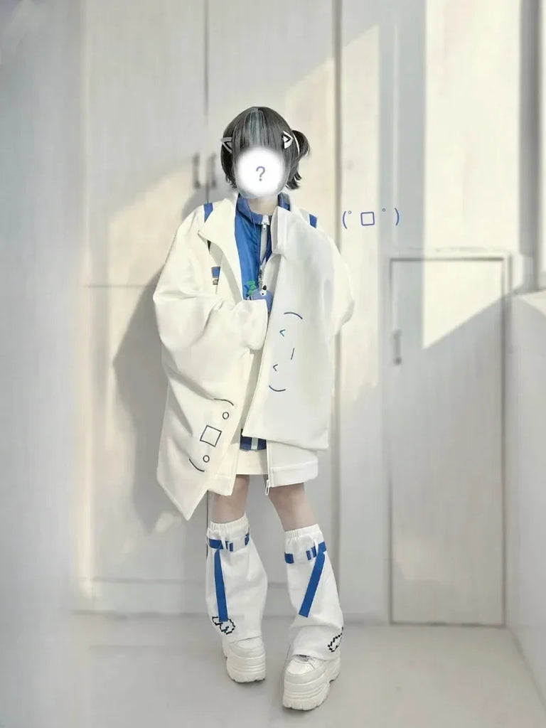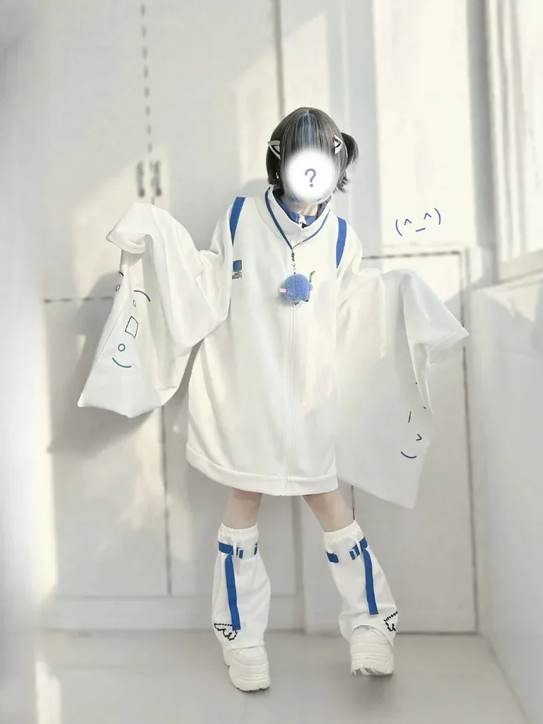 Discover our autumn cardigan with a zipper, a must-have for anyone passionate about alternative Japanese fashion. With its unique cut and wide sleeves, it combines comfort with a bold style. The cardigan made from lightweight material is perfect for layering and provides a casual yet polished look. The blue details add a dynamic touch, while the smiling motifs on the front lend a playful note to your outfit. Complete your look with this cardigan that evokes contemporary Japanese aesthetics and draws all eyes. Whether going out with friends or relaxing at home, this cardigan will quickly become your favorite piece. Embrace fashion that expresses your individuality with flair and originality!