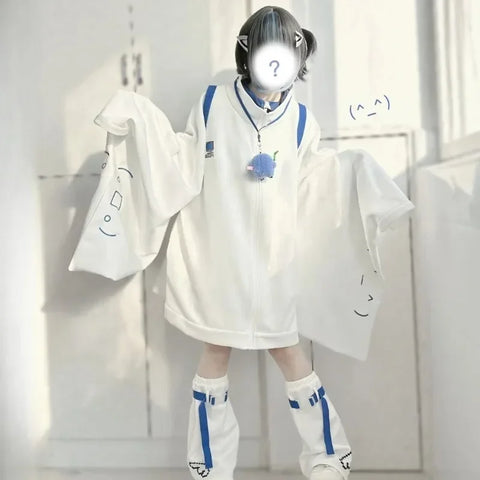 Kawaii Blue and White Cardigan Pancho Cut Zipper Fall Inspiration Japanese