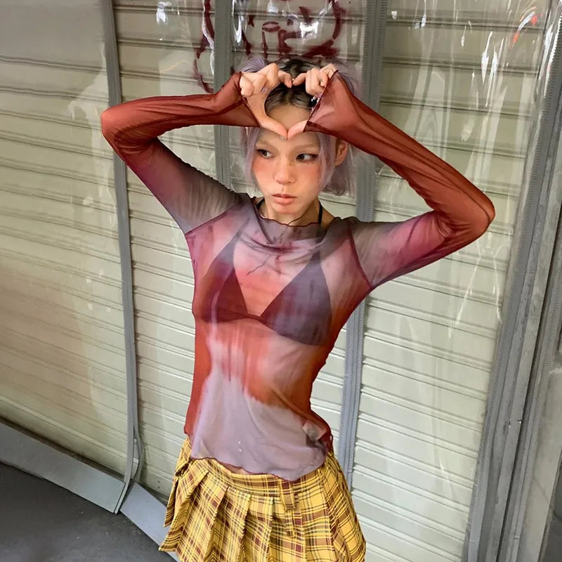 Y2K Transparent Mesh Top in Japanese Style of the 2000s