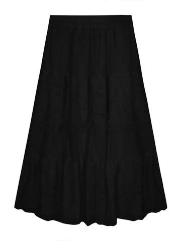 Discover the flowing elegance and vintage touch of our long lace skirt with ruffles, designed for those who tread paths off the beaten fashion track. Inspired by the sophisticated gothic aesthetic, this skirt, with its enchanting black fabric and delicate lace details, is a bold wink towards alternative fashion. Each layer of ruffles adds a dimension of captivating movement that gracefully dances with every step you take. The finely crafted lace discreetly adorns this piece, capturing mysterious tales within its subtle floral patterns. With its comfortable elastic waistband, it offers a perfect fit that flatters every figure. Whether for an evening outing in the cobbled streets of the city or for a quiet day enjoying coffee on the terrace, this skirt is the ideal companion for romantic free spirits. Pair it with your favorite combat boots for a chic gothic look or choose high heels and a knitted top for a more refined and feminine touch. With this long lace skirt with ruffles, you embrace your uniqueness and let your wardrobe tell a fascinating story of alternative fashion, where every detail counts and every outfit is a work of art.