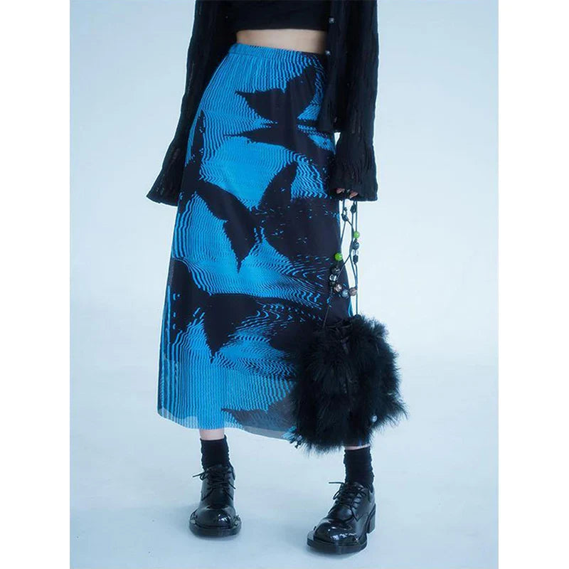 Immerse yourself in the fascinating world of the underground with our Gothic-Mesh midi skirt, adorned with an impressive butterfly pattern. This captivating piece unites elegance and boldness, making it perfect for anyone looking to make a striking style statement. Made from a mix of lightweight and airy fabrics, this skirt offers optimal comfort while staying on-trend. Its dynamic print in electric blue and black captures attention and adds a touch of originality to any summer outfit. Play with layers by pairing it with a fitted top or a crop top, and complete your look with unique accessories. This skirt is ideal for festivals, parties, or simply to highlight your style in everyday life, expressing your unique personality. Don't wait any longer and add this essential piece to your alternative wardrobe!