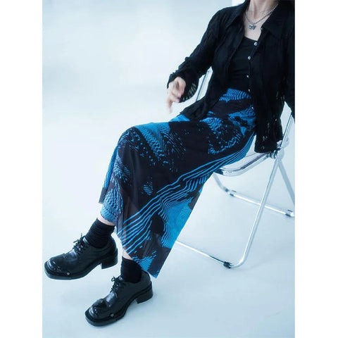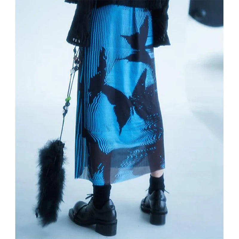 Gothic-Mesh Midi Skirt with Butterfly Print Feminine Alternative Fashion for Your Summer Look