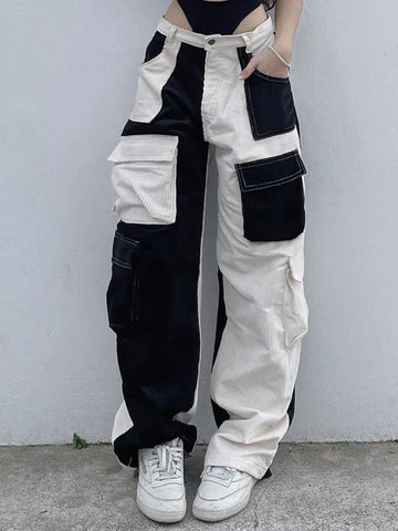 High Waist Baggy Pants with Patchwork Contrast Y2K