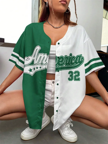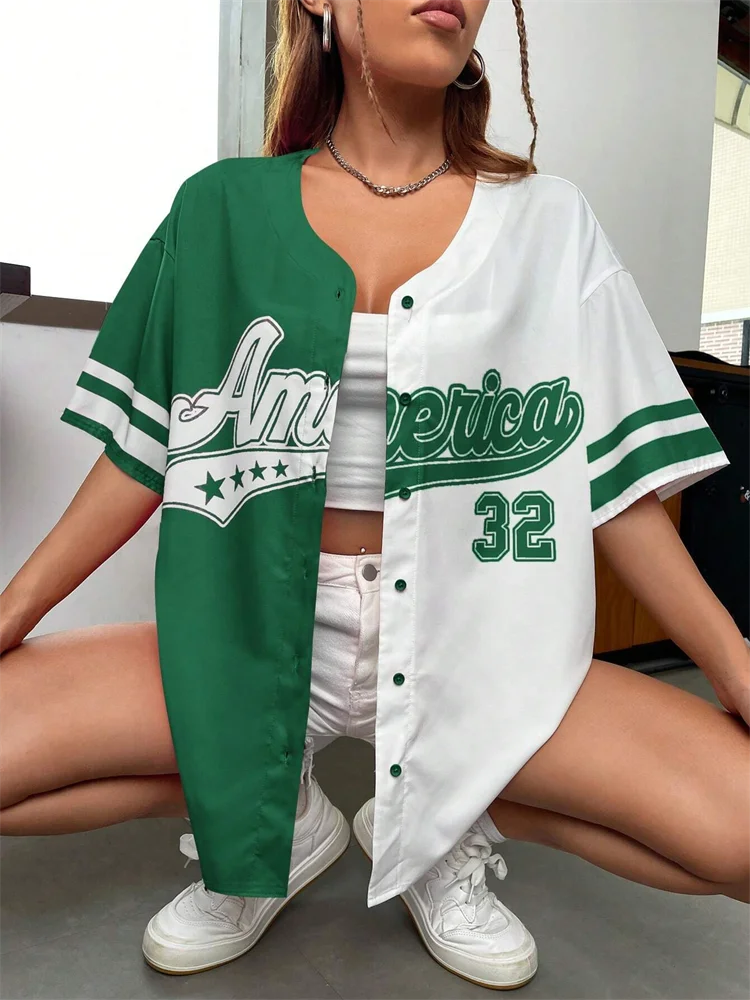 Baseball America Blusen-T-Shirt Number 32 in Y2K Style.