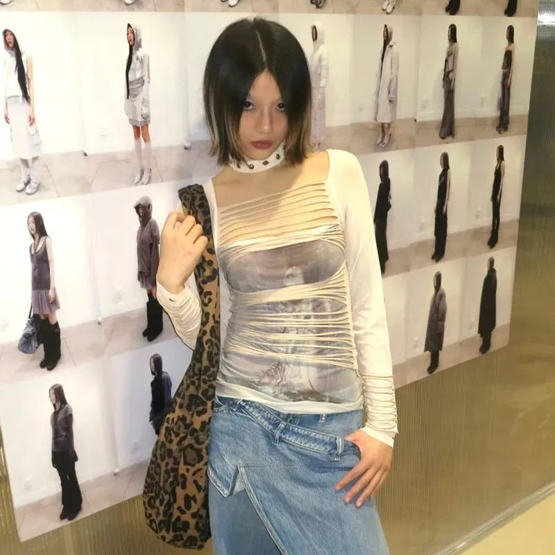 Discover the Fake Two-Pieces Irregular T-Shirt, a bold piece that is perfect for expressing your alternative style. This long-sleeve top has been designed in a grunge aesthetic and features a unique design with original cutouts that add a rebellious touch to your wardrobe. Made from lightweight, comfortable materials, it offers a perfect fit while allowing your skin to breathe. Its trashy style and irreverent details make it an essential fashion statement. Pair it with your favorite jeans or a leather skirt for a look that is sure to turn heads. Whether you're strolling through the streets or attending a concert, this T-shirt guarantees you a striking and unforgettable appearance. Embrace your individuality with this bold piece that changes the game!