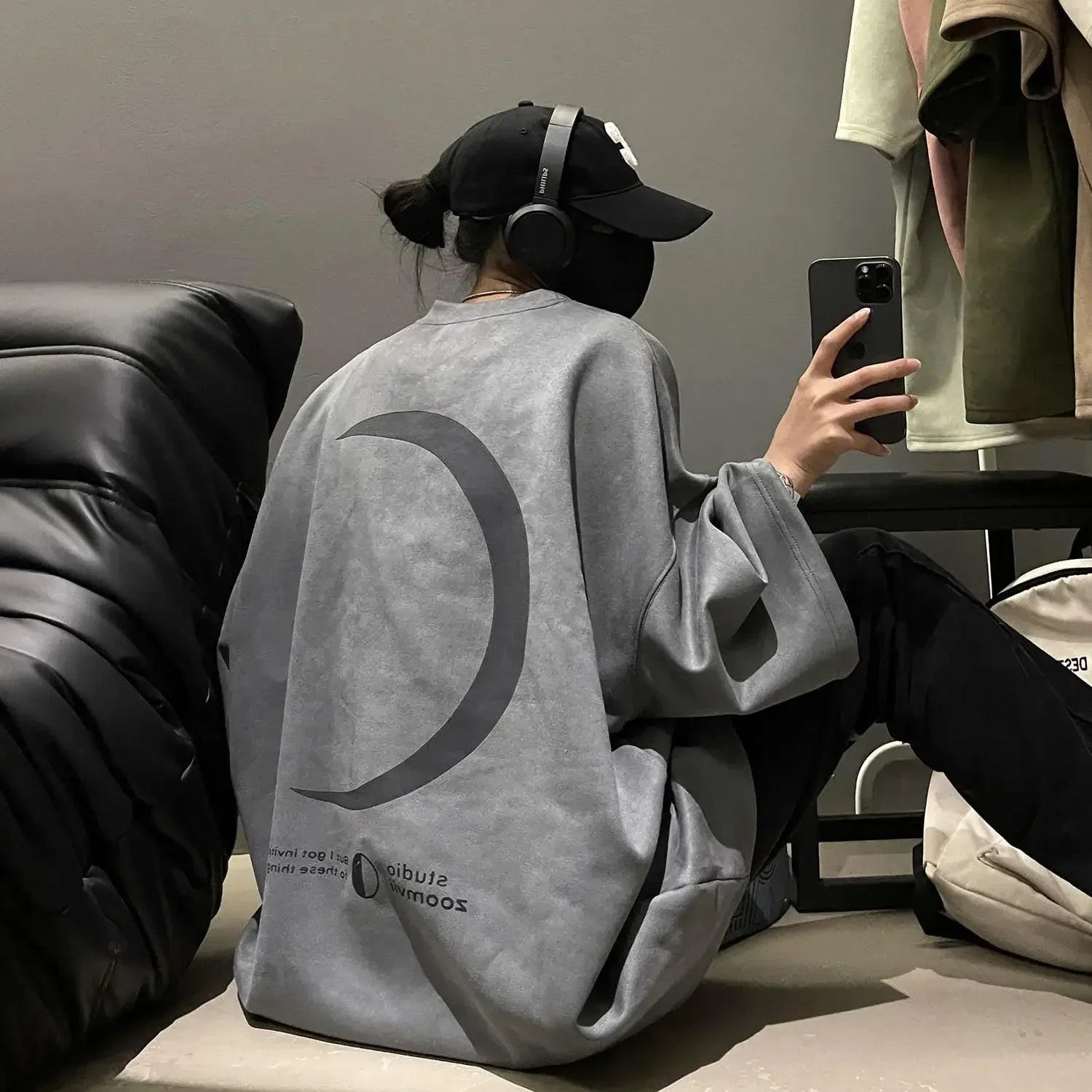 Dive into the world of alternative fashion with this oversized T-shirt for women. It perfectly embodies the boldness and originality of Korean street style. The top, made from soft, comfortable suede, captivates with its striking print that immediately catches the eye. The minimalist yet expressive design features a large circle accompanied by mysterious lettering, adding a touch of intrigue to your daily life. The loose, casual silhouette ensures unmatched wearing comfort while providing full freedom of movement, whether you're strolling through the city or enjoying a relaxed time at home. The olive green color of this T-shirt offers the versatility you need to pair it with a range of clothing, from your favorite jeans to a daring skirt for an outfit that stands out. Slip on this oversized, confident T-shirt to assert your passion for extraordinary fashion and stylishly distinguish yourself from the crowd.