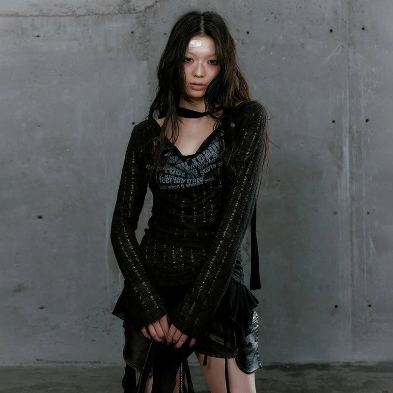Dive into the world of grunge with this solid-colored knit T-shirt. It combines controversial graphics with the nostalgia of street art. Its dusty rose color gives it a delicate yet bold look, while the graffiti prints endow it with a daring and rebellious character. This T-shirt has been designed in a slim-fit style to hug every curve of your figure while remaining very comfortable. It is made from a soft, breathable material, making it suitable for both a relaxed day and an elegant evening. The majestic red patchwork details at the hem and the long sleeves, which you can tie as you please, add a personal touch to your wardrobe and impart a chaotic yet fashionable style.