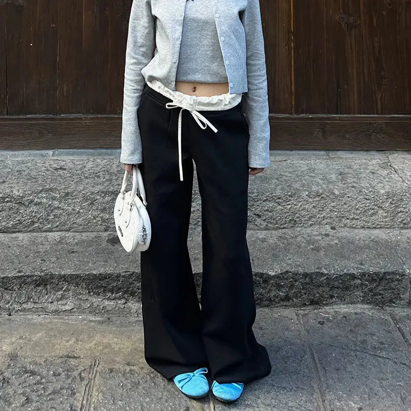 This unique design features discreet inserts and a relaxed patchwork that gives these sweats a distinctive streetwear vibe while maintaining an intriguing simplicity. Pair it with a minimalist crop top or an oversized sweatshirt for an undeniably Y2K aura.
