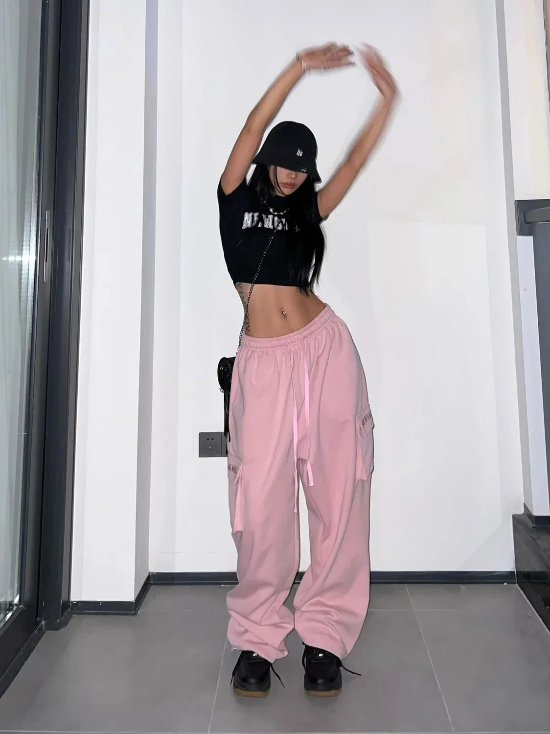 Pink Y2K Cargo Pants in K-Pop Style for Trendy Women