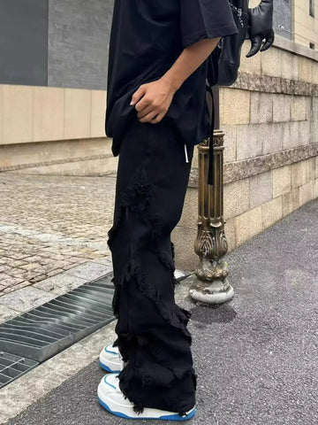 Dive into the bold world of alternative fashion with our Erosion Torn Pants - a must-have for anyone who loves the Harajuku style. These white jeans are designed for those who dare to stand out from the crowd. They offer a casual silhouette and a brutal aesthetic that is sure to turn heads. Made from high-quality denim, the pants feature rough edges and strategically placed rips that give your outfit a laid-back touch. Whether you pair them with an oversized t-shirt or a trendy crop top, they are suitable for any occasion, from hip-hop and dancing to a relaxed outing in the city. These jeans are practical and stylish, and also come with functional pockets that blend fashion with utility. Let your creativity flow and express your unique personality with these pants that perfectly embody the spirit of Y2K and urban culture. Treat yourself and add a highlight to your alternative wardrobe!