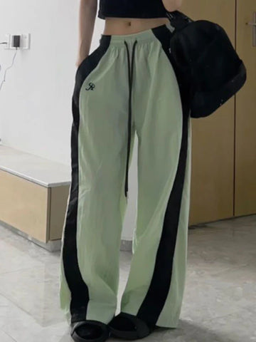 Leave your footprint in the alternative fashion world with these Y2K parachute pants that combine comfort and boldness. Inspired by hip-hop style, these wide pants are deep black with dynamic pink stripes and embody the essence of individuality and self-expression. Made to delight lovers of the early 2000s trend, these pants are not only a tribute to an iconic era but also a symbol of a rebellious attitude. The adjustable waistband allows for a flexible fit and optimal comfort - perfect for spontaneous dance sessions or a day in casual chic. The striking contrast between black and pink adds a fresh, youthful touch to your wardrobe. Whether you love streetwear or are simply looking for a piece that reflects your unique personality, these pants are the centerpiece you need. Don't wait any longer and make these parachute pants the cornerstone of your alternative fashion collection.