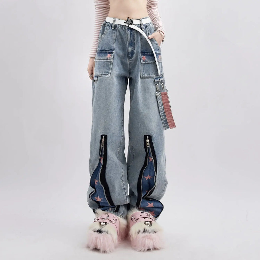 Jean Y2K High Waist Oversized with Star Print