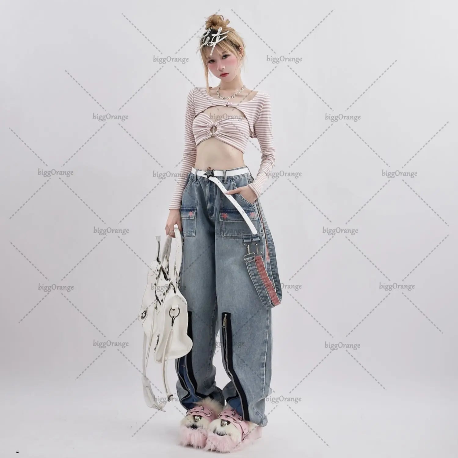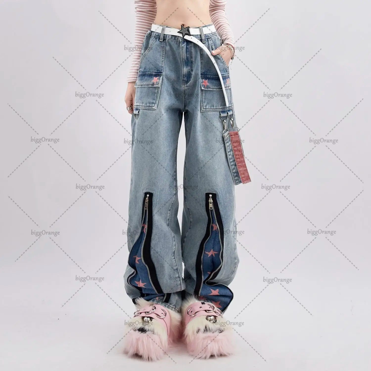 High-Waist-Jean Y2k in Oversized Look with Stars