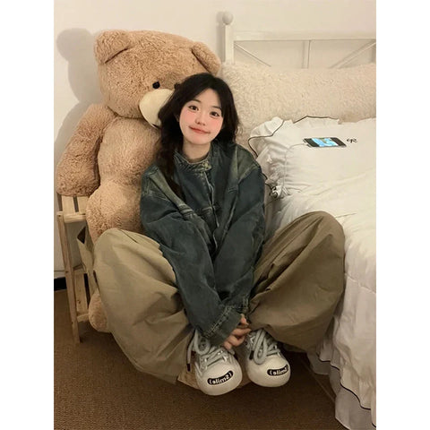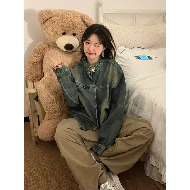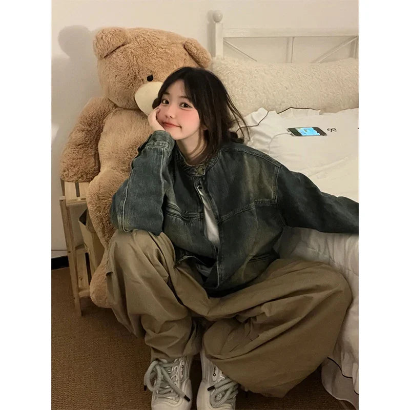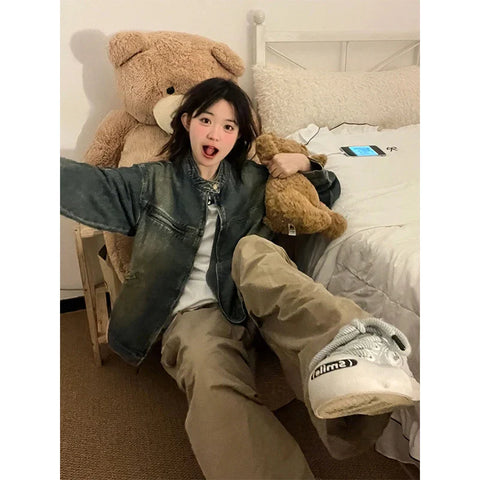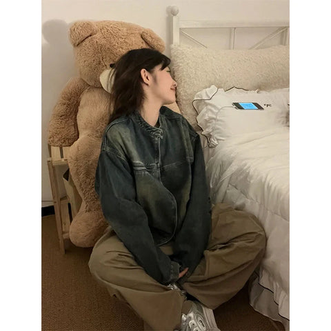 Oversized Distressed Jeans Jacket for Women in Y2K Style