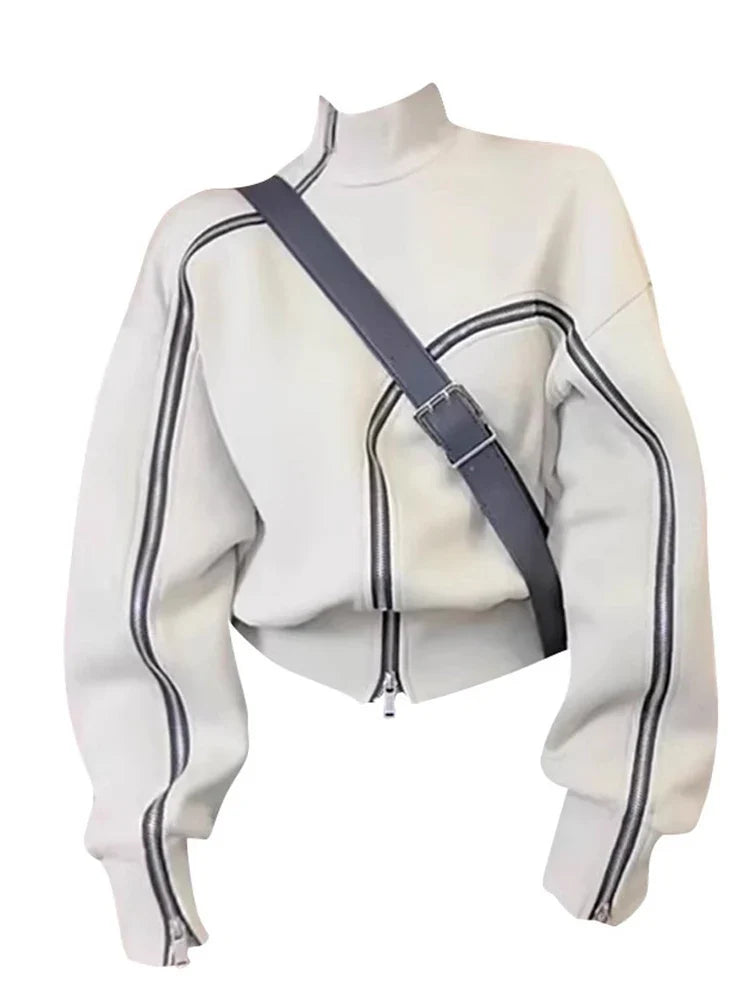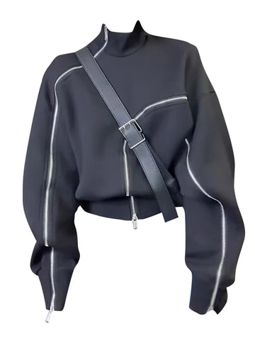 Discover the sweatshirt with a long turtleneck for women, an iconic piece of clothing that recalls the bold aesthetic of the 2000s. With its modern cut and unique details, this pullover features an innovative zipper and a contemporary look. It is made from a soft, comfortable fabric that provides a pleasant wearing experience all day long. The design is accentuated by graphic lines that emphasize the silhouette, while the stylish strap adds a touch of originality. This model is the perfect choice for fashion-conscious fashionistas who want to express their individuality while keeping warm. Whether you wear it with casual jeans or a dressier skirt, this sweatshirt will add a fresh touch to your alternative wardrobe. Don’t wait any longer; make a bold style statement with this fashionable must-have!