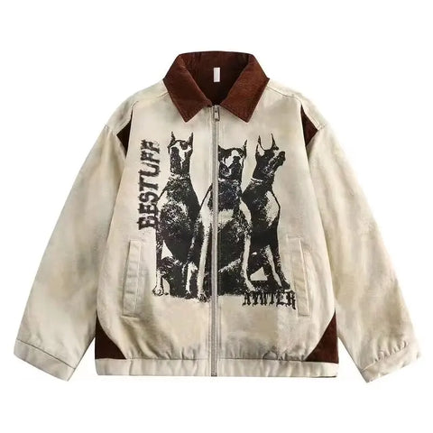Discover our College Y2K Color Block Jacket, a must-have for anyone who loves alternative fashion. With its casual design and loose fit, this jacket impresses with its double layers and distinctive velvet collar. Featuring a bold dog print, it combines originality and streetwear style, making it perfect for those who like to stand out from the crowd. The jacket is made from high-quality fabric and not only looks good but also offers high wearing comfort for your daily adventures. Whether you pair it with ripped jeans or cargo pants, its unique aesthetic will turn heads. Get ready to accentuate your personality with this piece that perfectly blends the past and present of fashion!
