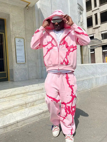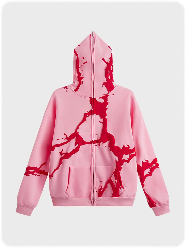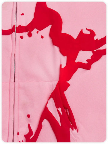 Dive into the bold world of streetwear with our eye-catching Y2K hoodie! This soft, comfortable hoodie in vibrant pink features modern art motifs and red splashes that add an original touch to your wardrobe. Its casual cut and practical zipper make it the perfect choice for a laid-back yet stylish look. Whether you're going out with friends or want to expand your alternative style with a unique piece, this sweatshirt will stand out from the crowd. The long sleeves and large hood keep you warm on cool evenings, while the front pockets are ideal for storing your essentials. Show off your vibrant personality and dare to be original with this hoodie that won't go unnoticed!