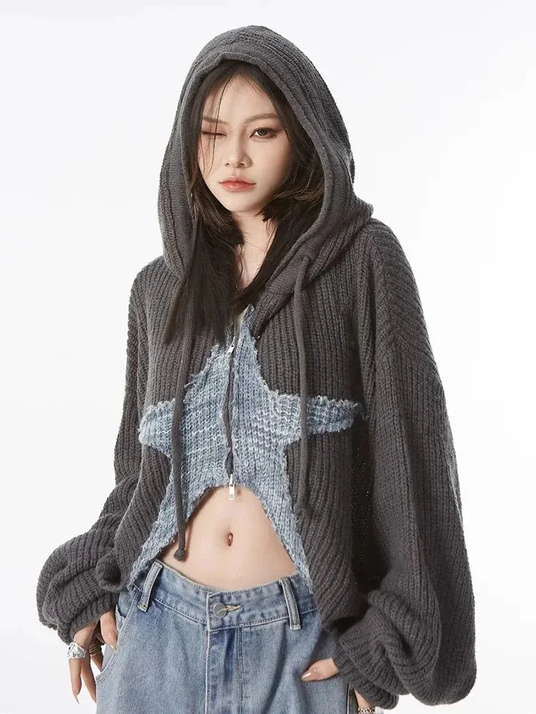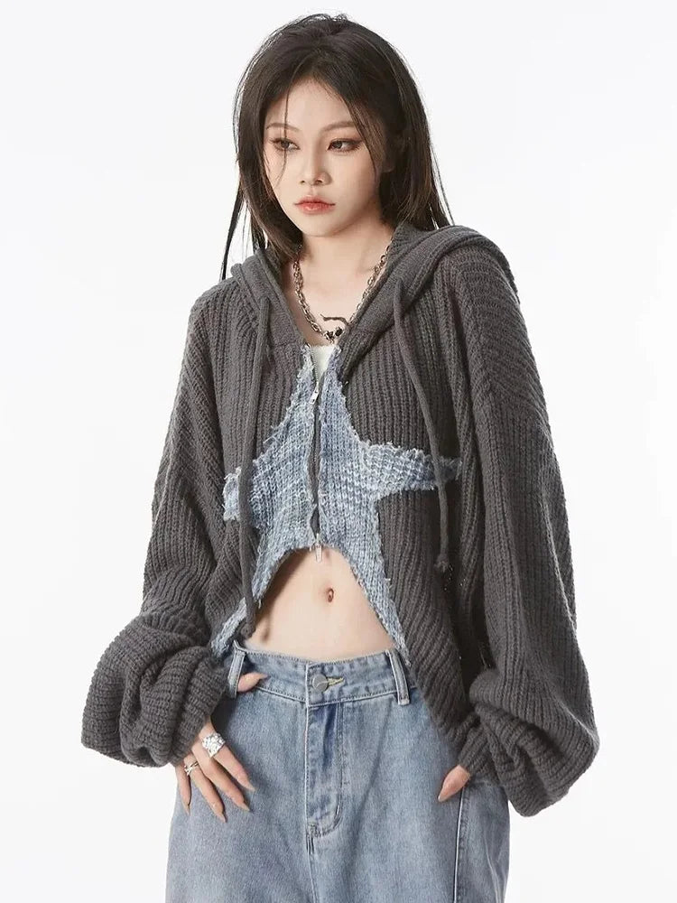 Discover the Y2K Star vest, the perfect embodiment of the vintage streetwear trend that combines comfort and style. This dark True crossover knit perfectly matches your casual outfits. The dark color and unique details, such as the embroidered star on the front, give it a bold touch. Made from high-quality materials that guarantee warmth and durability, this jacket is ideal for cooler days while remaining trendy. Whether worn over a simple tank top or with a long-sleeved top, this model is a must-have for your alternative wardrobe. Besides its functionality, it reflects the freedom and creativity of Y2K fashion and is perfect for expressing your unique personality. Choose the Y2K Star jacket and instantly transform your style!