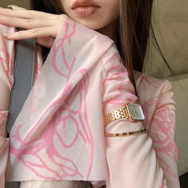 Top Transparent Pink Tie-Dye Long Sleeve Style Soft-Girl