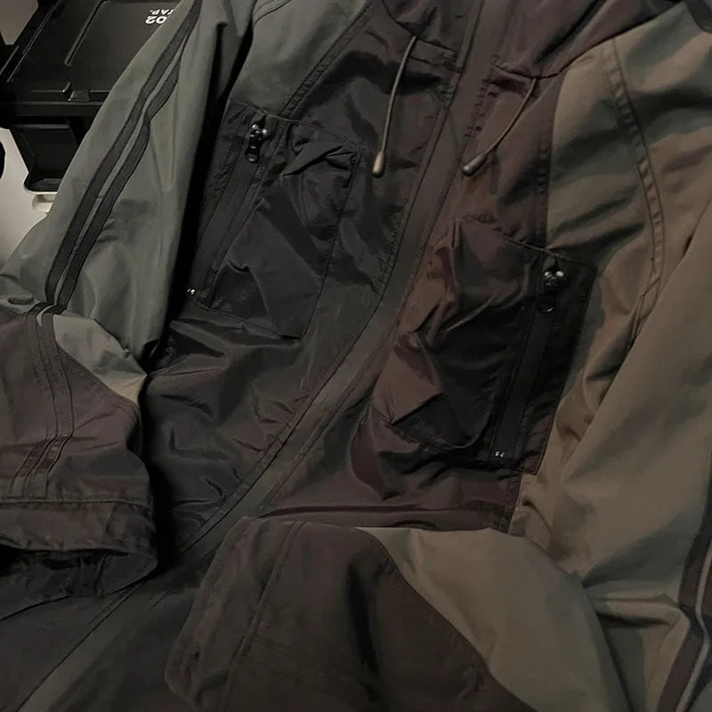 Dive into the heart of the trend with this Techwear jacket for women, a must-have for any alternative wardrobe. This versatile piece not only adds an urban touch with its Harajuku style, but also offers unparalleled functionality as it is designed for active daily life. This anorak jacket made from windproof material is ideal for braving the whims of the weather in a futuristic style. The dark color fits perfectly with Gothic and Grunge aesthetics, but also adds a slight E-Girl touch. The oversized fit ensures freedom of movement and comfort, while the technical details - multiple zippered pockets, geometric inserts, and a drawstring at the waist - make the jacket not only practical but also beautiful. The adjustable and spacious hood serves as a perfect refuge from the elements or simply as an accent of a polished and mysterious style. The robust zipper ensures you can easily slip in and modulate the style as you please: open for a breezy casual look or closed for a sharpened, structured silhouette. The elastic ribbed cuffs on the sleeves complete the design for an optimal fit. This jacket is inspired by the Korean urban fashion scene and promises authenticity and originality in a world where personal expression prevails. Make this Techwear jacket the centerpiece of your look and embark on an unparalleled clothing adventure.