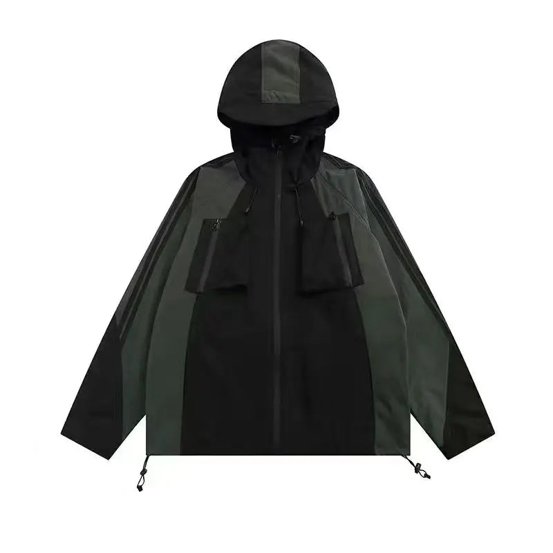 Techwear Jacket for Women: Vintage Oversize Harajuku Anorak with Hood and Zipper