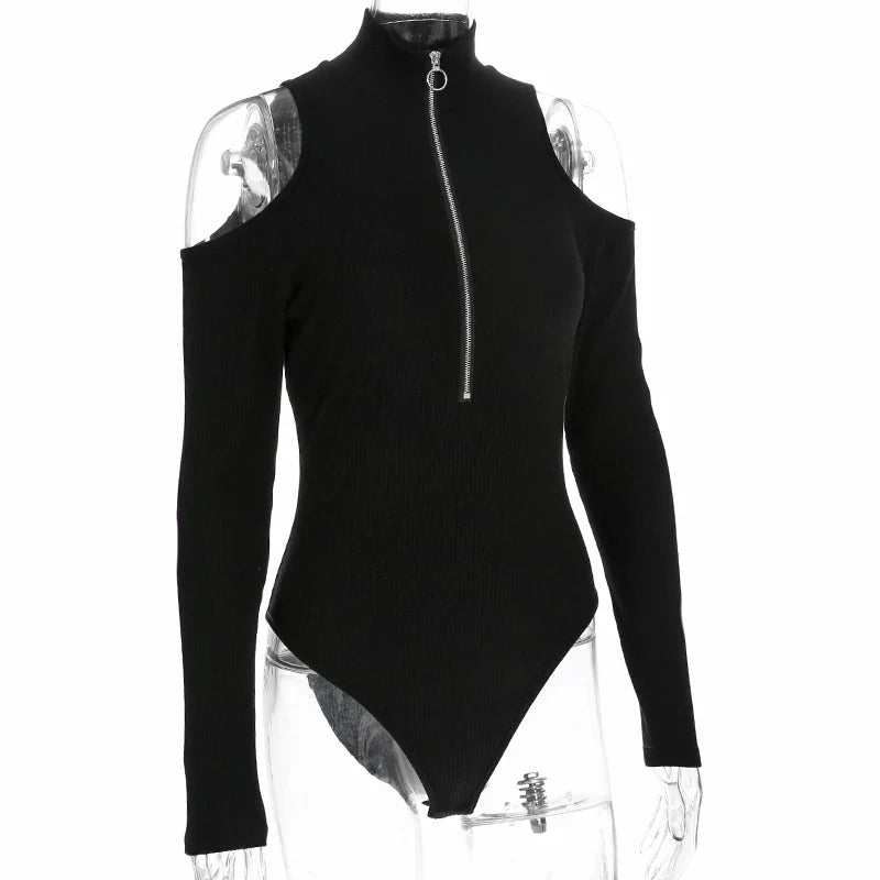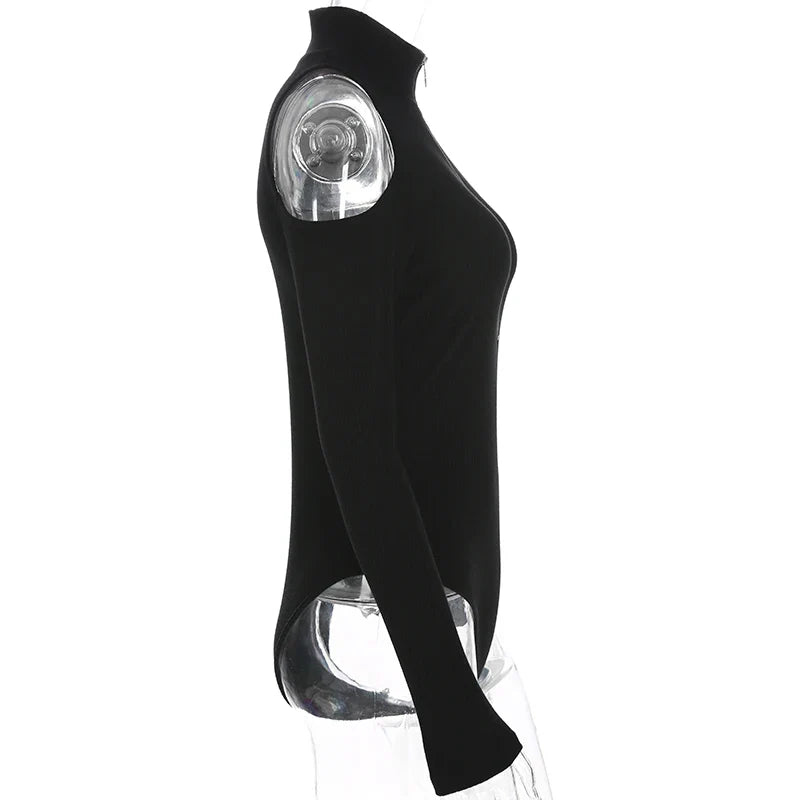 E-Girl Black Bodysuit with Zipper and Open Shoulder