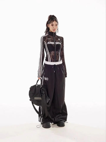 Discover our cardigan with long sleeves, an essential piece of clothing that highlights your alternative look while keeping you fashionably updated. This slim-fitting model is adorned with beautiful black lace, delicate and seductive, subtly emphasizing your silhouette. With the front zipper, you can play with the style depending on your mood - wear it open for a casual look or zipped up for a chic outfit. The form-fitting design accentuates your waist, while the stand-up collar offers protection and adds a touch of elegance. The white stripes on the sleeves create an exciting contrast and give the outfit a sporty touch.
