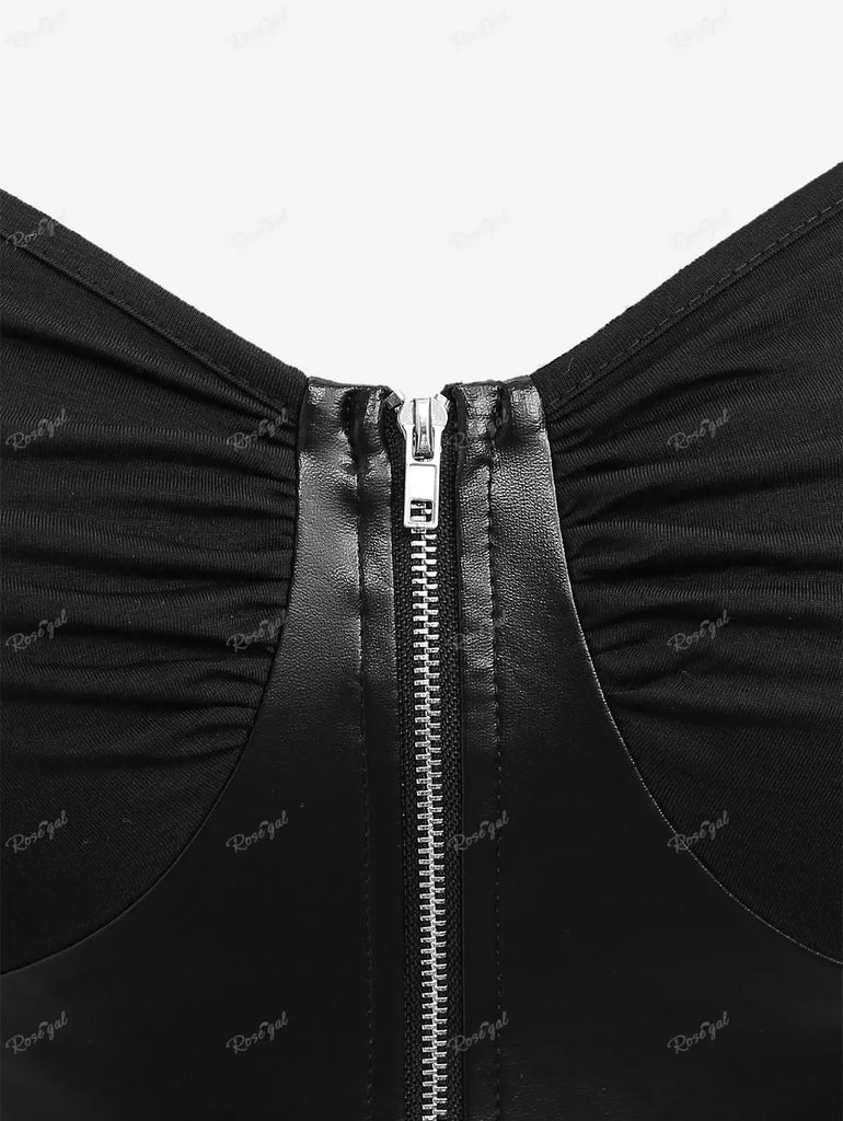 Black Gothic T-Shirt with PU Panels, Zipper, Honeycomb and Net Effect.