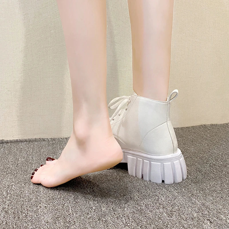 Dive into the bold world of alternative fashion with our black chunky ankle boots, perfect for the fall and winter season. Made from high-quality synthetic leather, these boots are designed to stand the test of time while providing a striking style. The rugged features of these boots, with their thick serrated sole, add a touch of punk to any outfit. Whether you wear them with ripped jeans or a vintage dress, these imposing boots will turn heads. Thanks to the versatile laces and the buckle at the back, they are easy to slip on and combine comfort with trend. Dare to express your uniqueness and make a bold step - with these must-have boots for your alternative wardrobe!