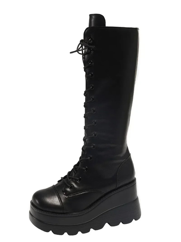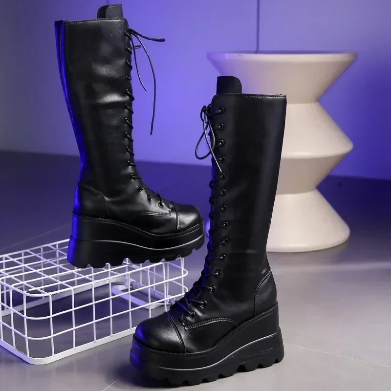 Black Gothic Winter Boots for Women Made of Vegan Leather.