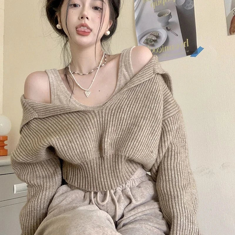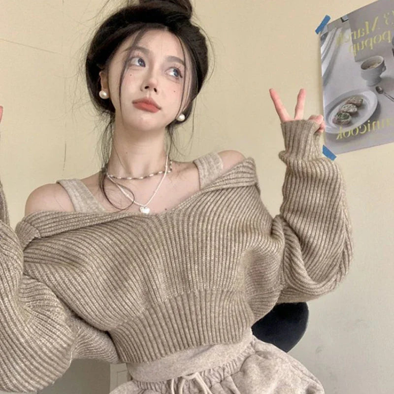 Discover our long-knit sweater with a crew neck, an essential piece for anyone who wants to combine comfort with an alternative style. With its crop design, it adds a modern touch to your wardrobe and keeps you warm on cool days. The soft, lightweight material ensures optimal wearing comfort - perfect for a casual outfit or an evening with friends. The wide sleeves and off-shoulder neckline give this look, inspired by Korean trends, a feminine touch. Whether you wear it with a flowing skirt or high pants, this sweater is the perfect expression of your bold personality. With its neutral colors and unique ribbed texture, it pairs well with any outfit and highlights your alternative style. Don't miss the chance to add this must-have to your collection!