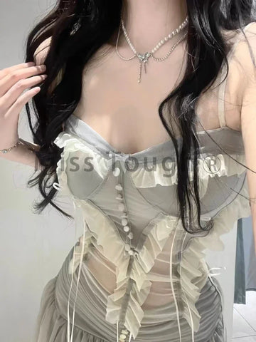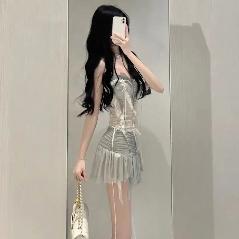 Our elegant Korean set, consisting of a bustier and mini skirt, is a must-have for women who love to combine seduction with boldness. The figure-hugging, sleeveless bustier is made from a lightweight, delicate material blend that perfectly showcases your silhouette. The flared mini skirt with pretty ruffles provides a stunning look and exceptional freedom of movement. The sophisticated craftsmanship with harmonious details is reminiscent of the Korean style.