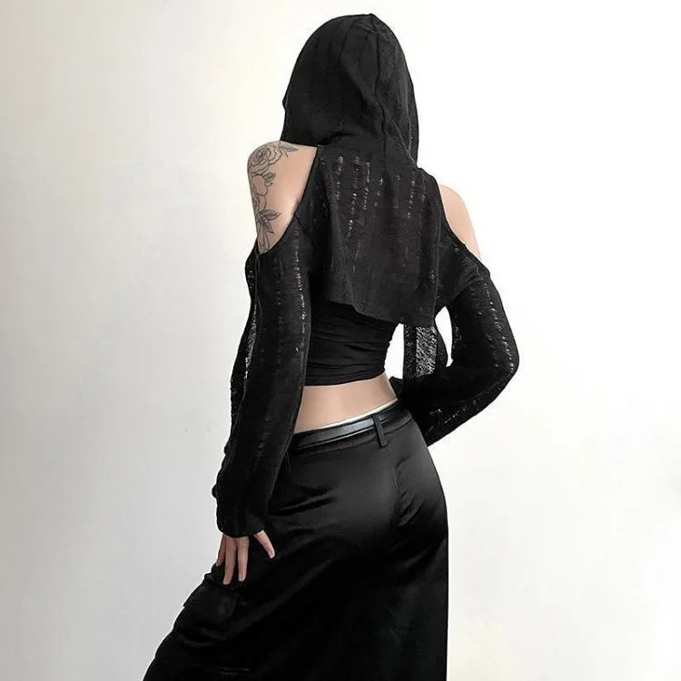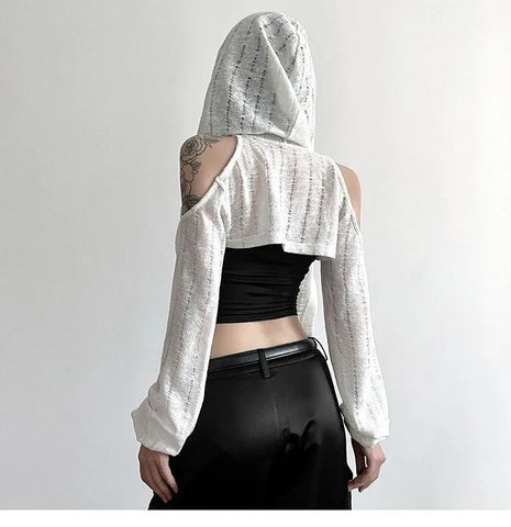 Top Y3K Cropped Long Sleeve Shirt with Hood Subversive Style