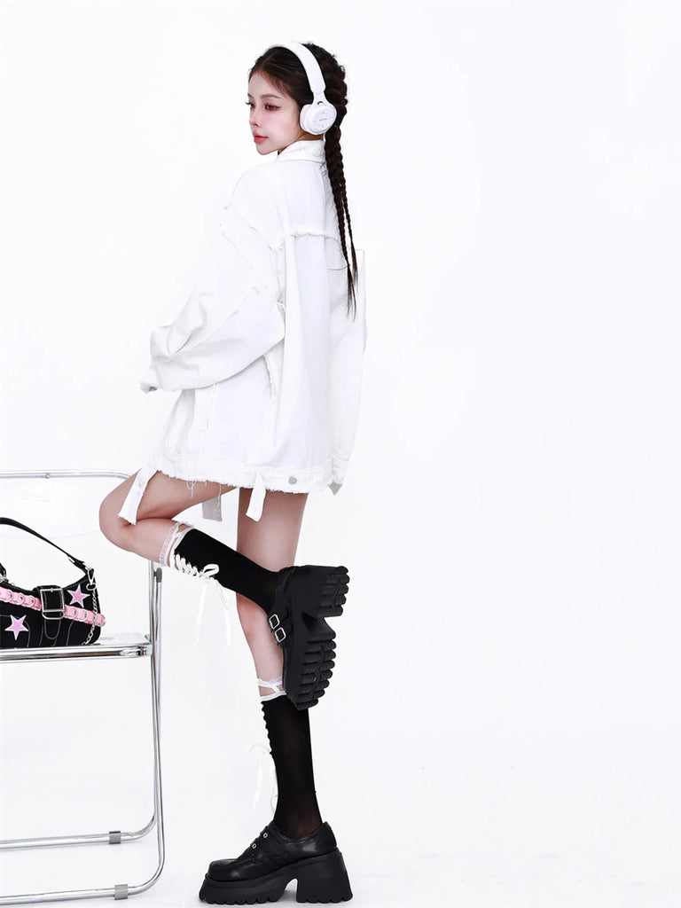 デニムジャケット デコンストラクト Acubi オーバーサイズ ホワイト