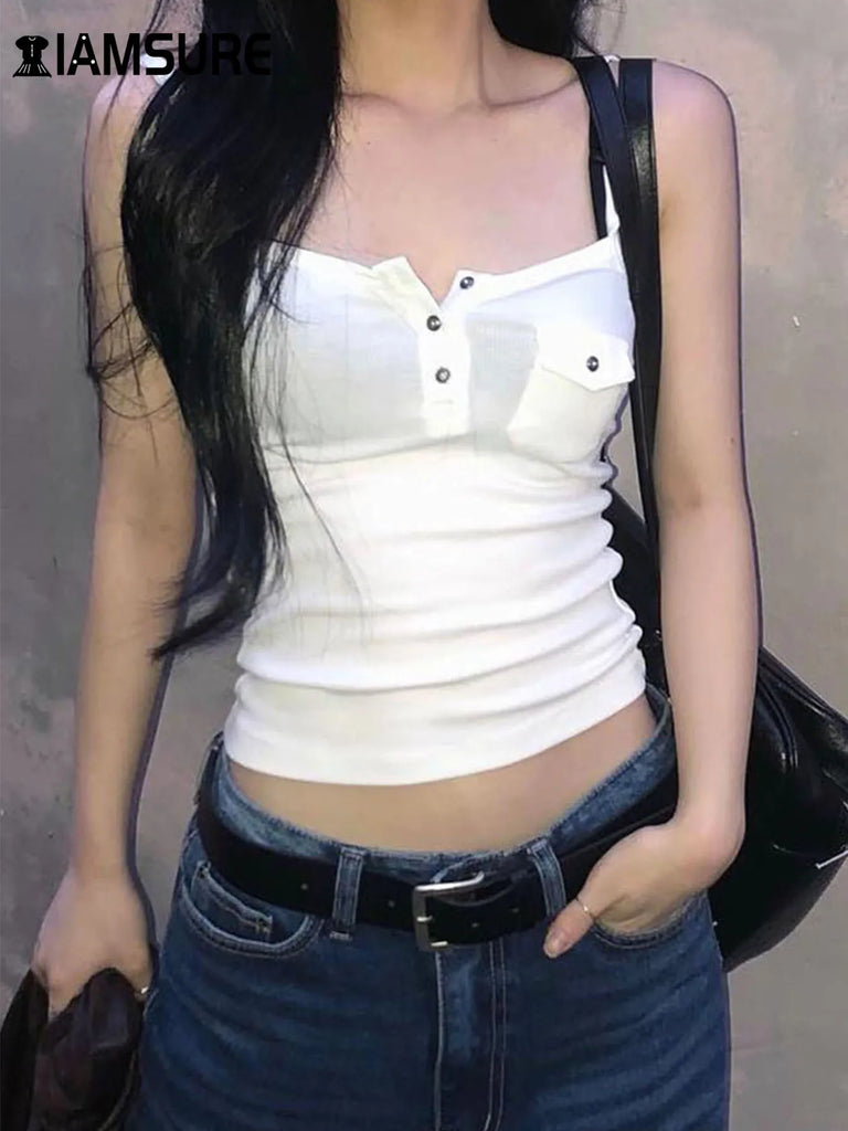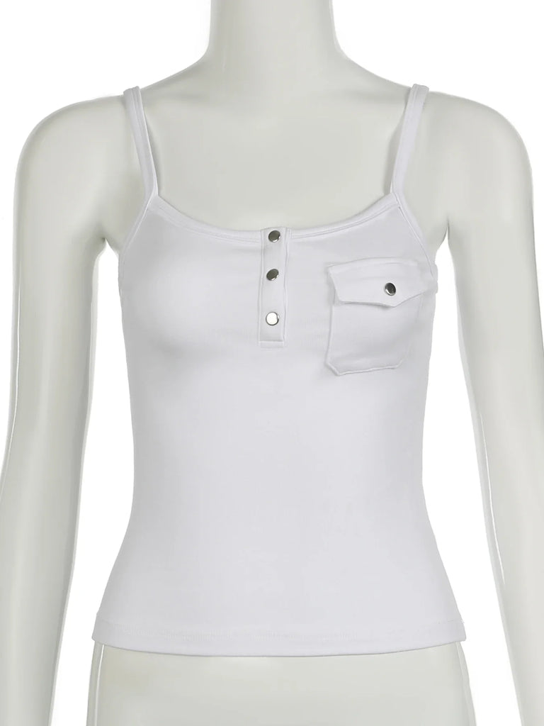 ポケット付き韓国風キャミソールトップス カジュアルエレガンス