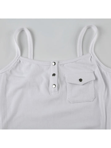 ポケット付きのキャミソールトップは、セクシーでありながらカジュアルな装いにぴったりです。柔らかく伸縮性のある生地で作られたこのタンクトップは、わずかにスリットの入ったネックラインが特徴で、体型を引き立てながら最高の快適さを提供します。ノースリーブのデザインと体にフィットするスタイルは、晴れた日や友人との夜に最適です。装飾的なボタンがユニークなタッチを添え、サイドポケットは小さな必需品を入れるのに便利です。ハイウエストのジーンズやスカートと合わせると、トレンディで自信に満ちた装いになります。この改良されたベーシックなアイテムで、あなたのユニークなスタイルを披露しましょう。あなたのユニークな個性を表現するのに最適です。