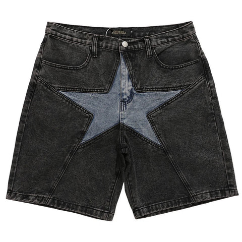 Y2K デニム ショーツ パッチワーク オーバーサイズ ヒップホップ。