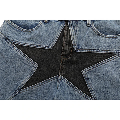 Y2K パッチワーク ジーンズ ショート ウェーブ スタイル オーバーサイズ