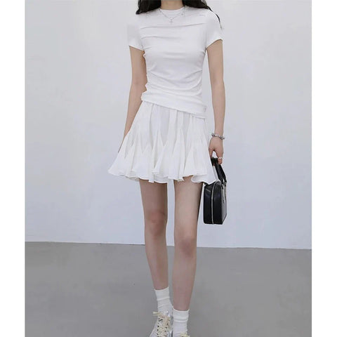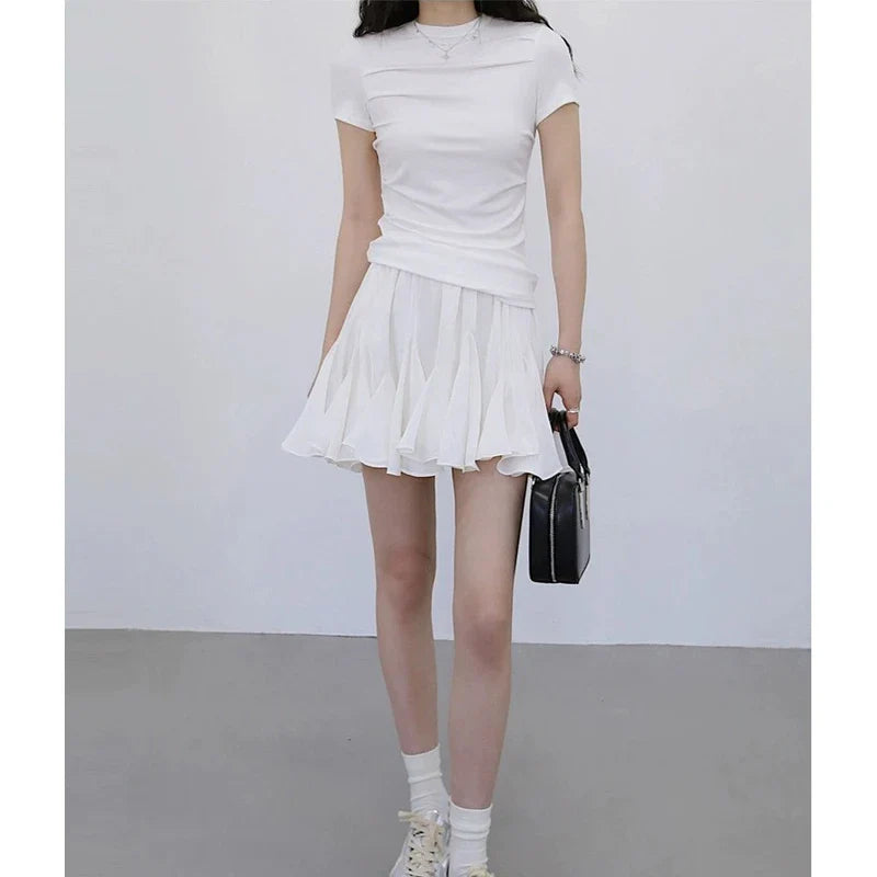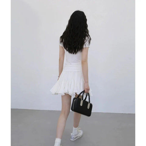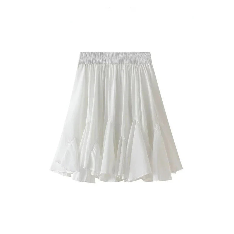 魅惑的な韓国風のフリル付きホワイトミニスカート