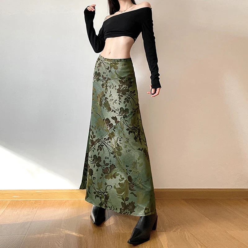 グリーンのプリント柄トランペットミディスカートで魔法の世界に足を踏み入れましょう。この魅惑的なモデルは、エレガンスとオルタナティブなスタイルを兼ね備えており、あなたのユニークな個性を表現するのに最適です。ローウエストのスカートは、ヒップに優雅にドレープし、歩くたびに踊るような流れるようなシルエットを作り出します。グリーンとブラウンの色合いの繊細な花柄は、フェアリーコアの美学を呼び起こし、ロマンチックな魂に理想的です。柔らかい素材で作られており、軽くて快適ですが、トレンドのアンクルブーツからエレガントなサンダルまで、お気に入りの靴と組み合わせるのに十分な強度があります。フィットしたクロップトップと合わせてシックなカジュアルルックに、オーバーサイズのトップスと合わせてリラックスした雰囲気に。ヴィンテージのアクセサリーをいくつか加えれば、注目を集める準備は万端です。オルタナティブワードローブに欠かせないこのアイテムをお見逃しなく。