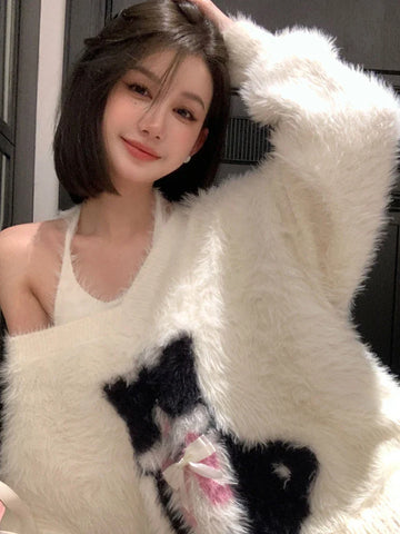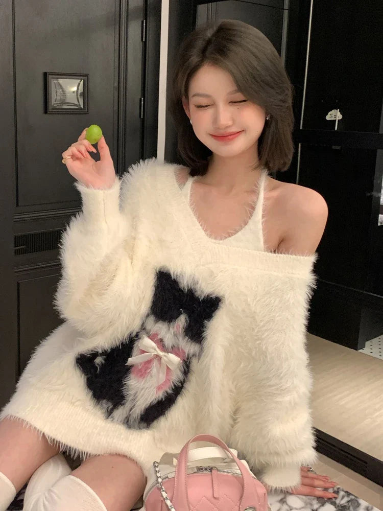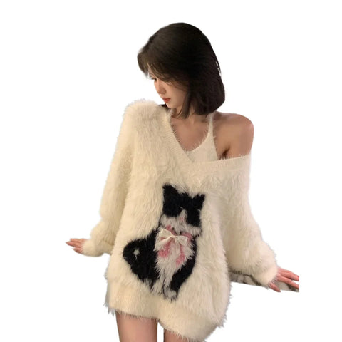 Katzen-Motiv für Kuscheliger Herbstlook の特大韓国製 Strickpullover mit Katzen-Motiv für Kuscheliger Herbstlook