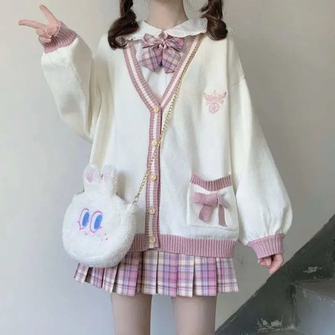 パステルカラーの柔らかさとユニバーシティスタイル。ソフトガールスタイルのニットカーディガンに込められた柔らかさに魅了されてください。