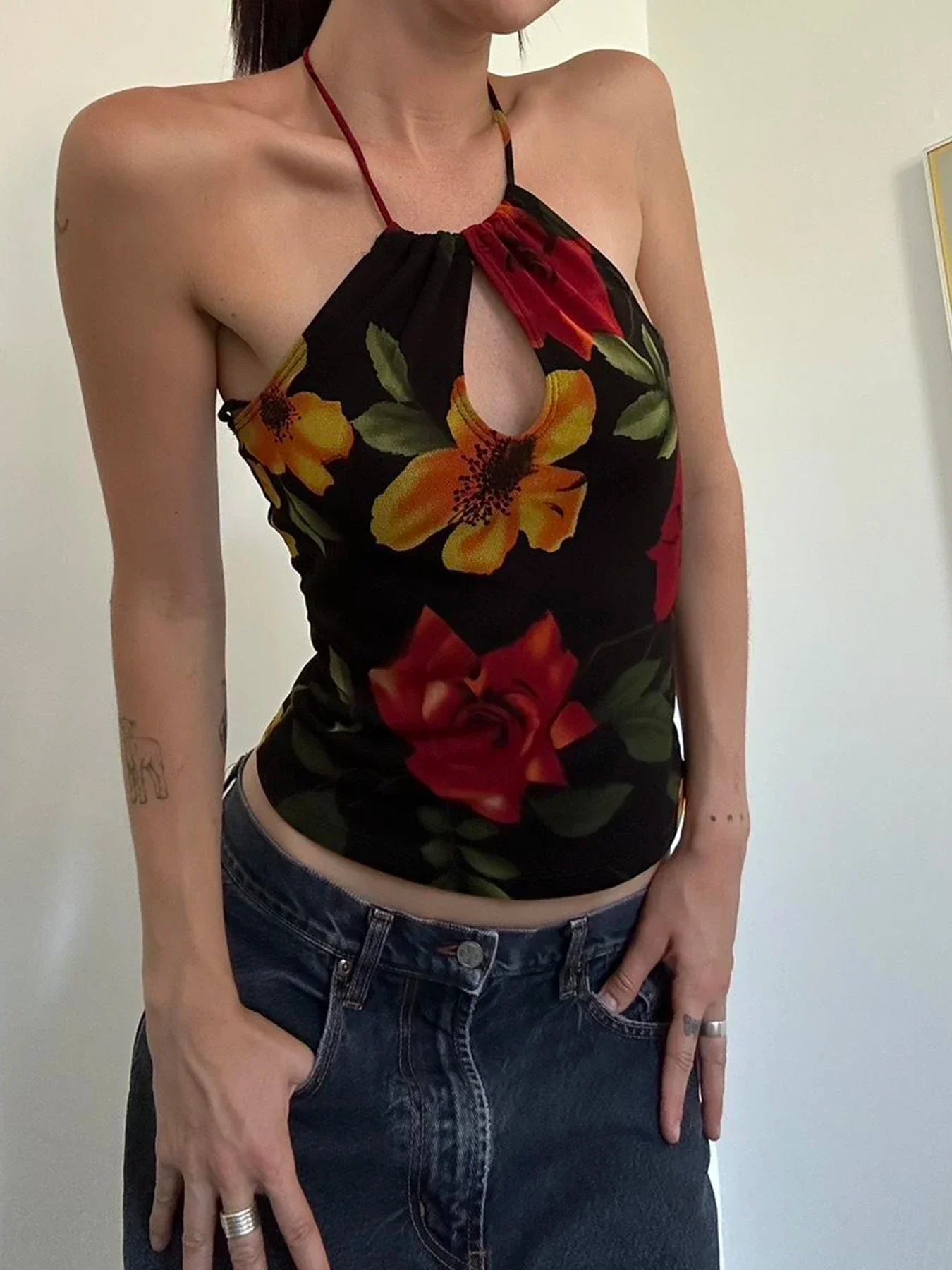 ホルタートップ フローラル アジャスト アンド バックレスで、優雅さとスタイルの世界に飛び込みましょう。この魅惑的なブラック トップは、「ソフトガール」の美学を愛する方のためにデザインされており、目を引くオーバーサイズのフローラル プリントが特徴です。大胆で鮮やかな赤とオレンジのトーンの壮大な花が暗い背景に舞い、ワードローブに反抗的な甘さを加えます。洗練されたシルエットが天国のような外観を約束し、大胆なホルターが謎のヒントを解き明かします。首の後ろのタイ バンドが魅力をさらに高め、カスタマイズされたフィット感を実現します。深いカットのデザインが背中を強調し、シルクの生地が優しく愛撫するように肌の上を滑ります。このホルター トップは魅力的なアイテムであるだけでなく、姿勢やライフスタイルを反映しています。
