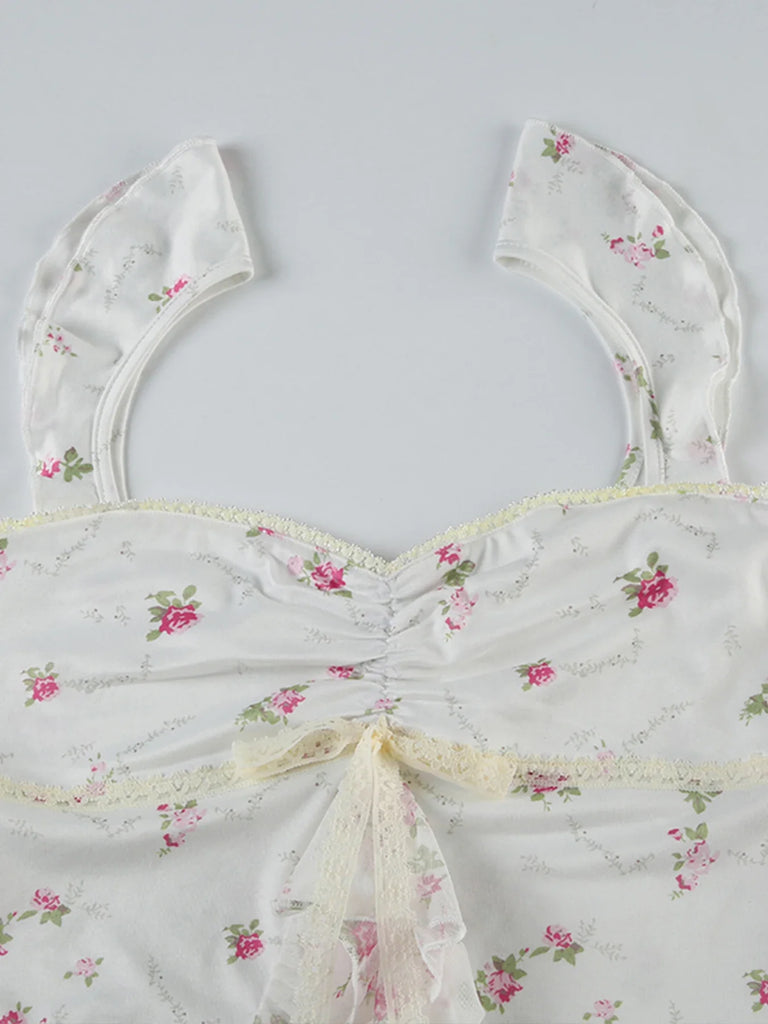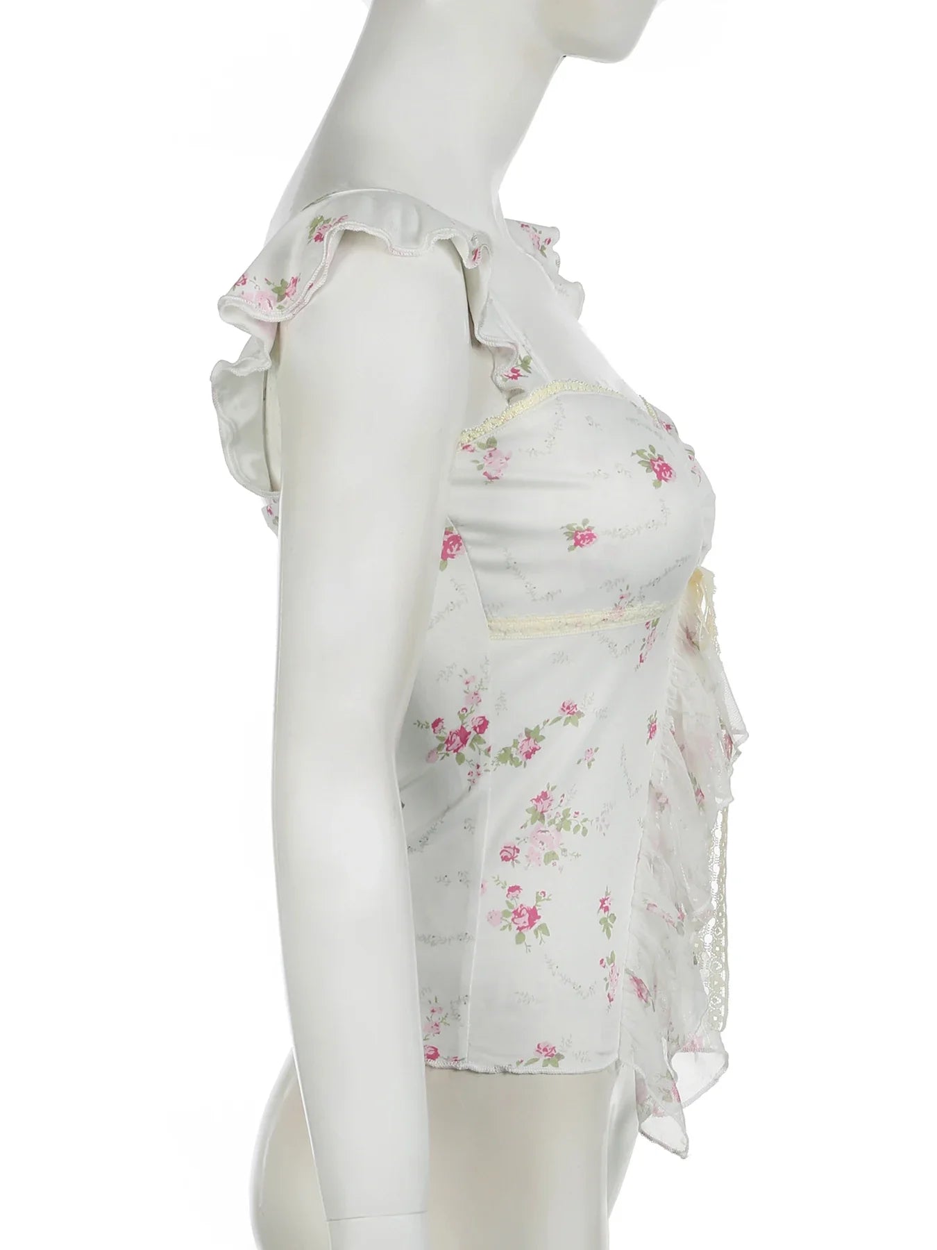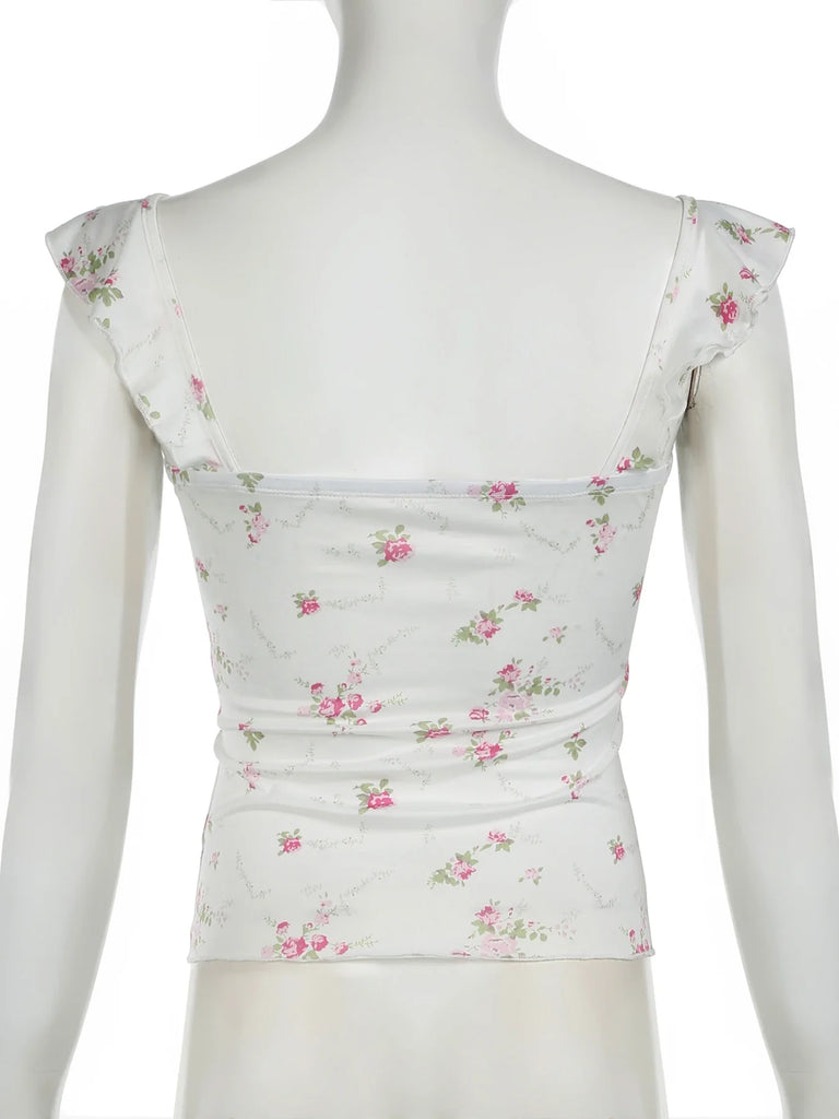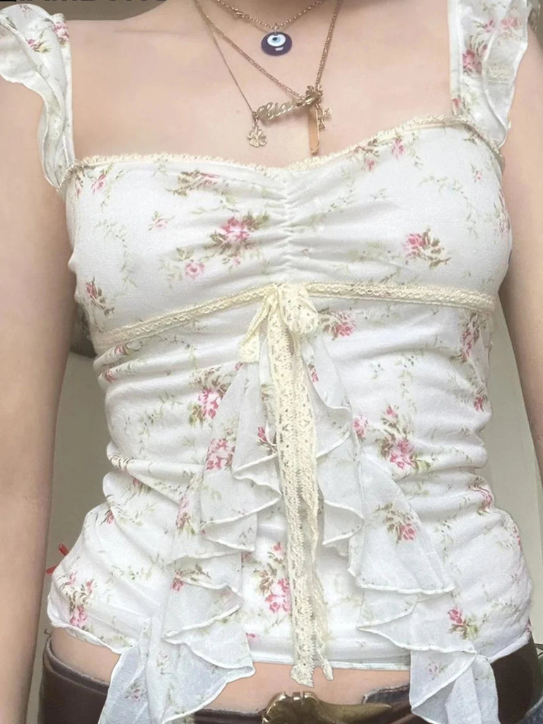 フローラル フリル T シャツの優しくフェミニンなエレガンスをぜひご体験ください。オルタナティブでロマンチックなスタイルをお探しの方に最適です。柔らかく軽量な生地で作られたこのノースリーブのトップスは、スクエアネックラインと繊細なフリルが特徴で、あなたの装いに魅力を添えます。繊細な花柄で飾られ、甘くガーリーな美学を呼び起こし、晴れた日や友人とのお出かけに最適です。フロントのレースアップのディテールがウエストを強調し、この象徴的なアイテムに洗練されたタッチを加えています。デニムスカートと合わせてカジュアルに、エレガントなパンツと合わせて夜のイベントに。この豪華な T シャツは、オルタナティブなワードローブを女性らしさとスタイルで高めます。この魅惑的なアイテムで大胆な主張をし、信じられないほど快適に感じてください。独自のユニークなスタイルを表現し、このトップスに魅了されてください。