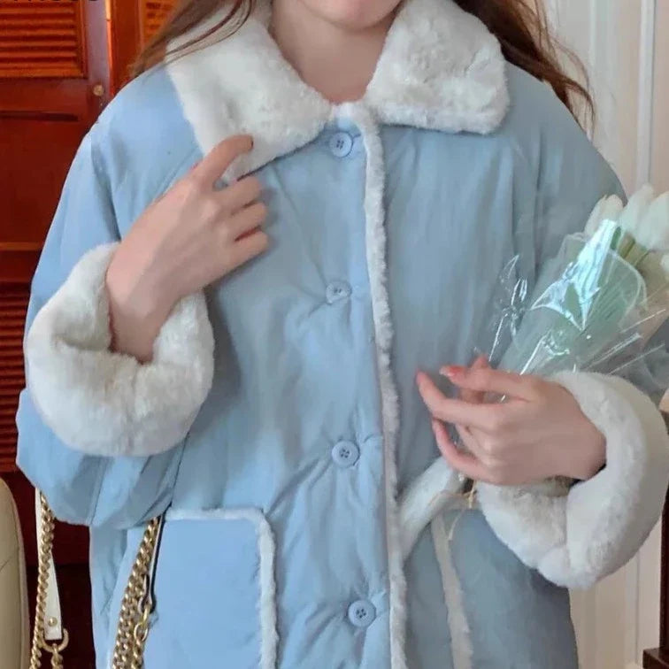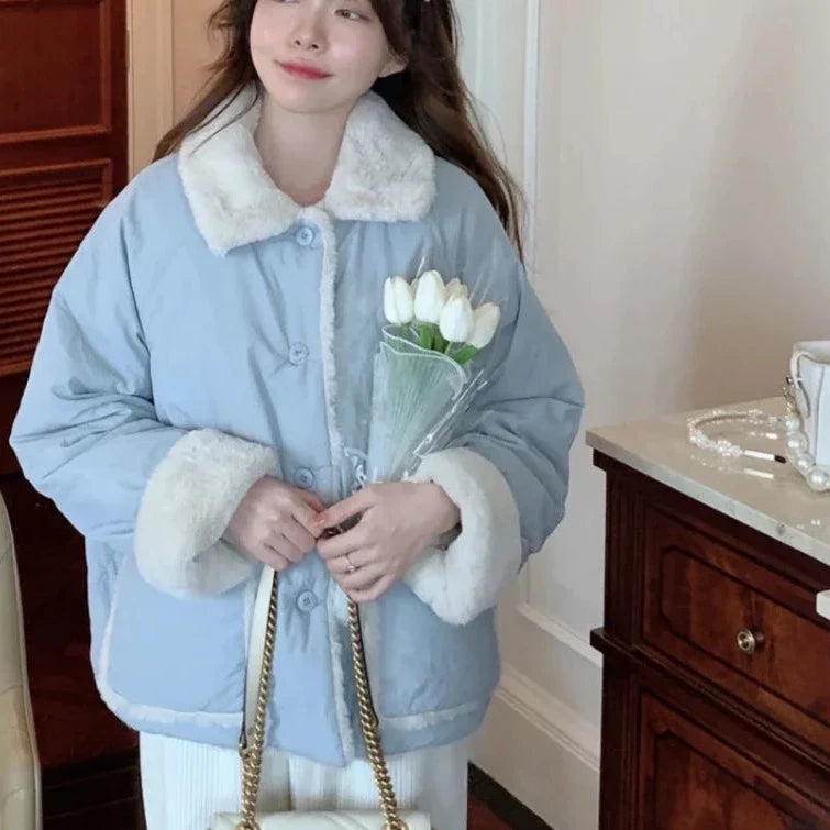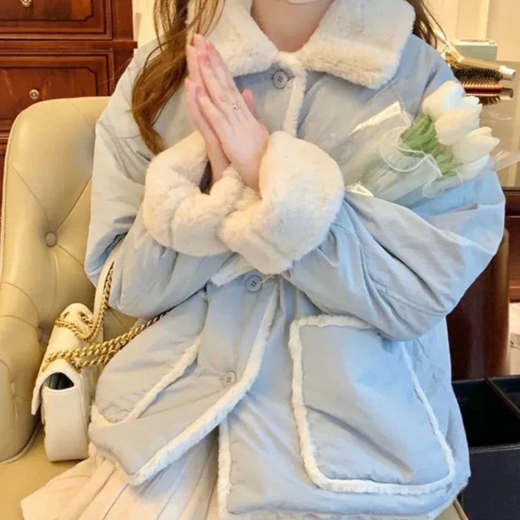 ショート丈で厚手のソフトガール パーカーの心地よさに身を包んでください。原宿の要素を取り入れたこのジャケットは、スタイルと暖かさが融合した冬の日に最適です。柔らかさと優しさが特徴の魅力的なルックスをお約束します。ふわふわのプラッシュカラーは、あなたの服装にセクシーなタッチを加えるだけでなく、あなたを美しく暖かく保ちます。スカイブルーのパステルカラーは、凍りつくような朝を暗示し、ゆったりとしたフィット感は、お気に入りのセーターと楽に組み合わせることができます。多用途で快適なこの両面アイテムをお見逃しなく。特徴: